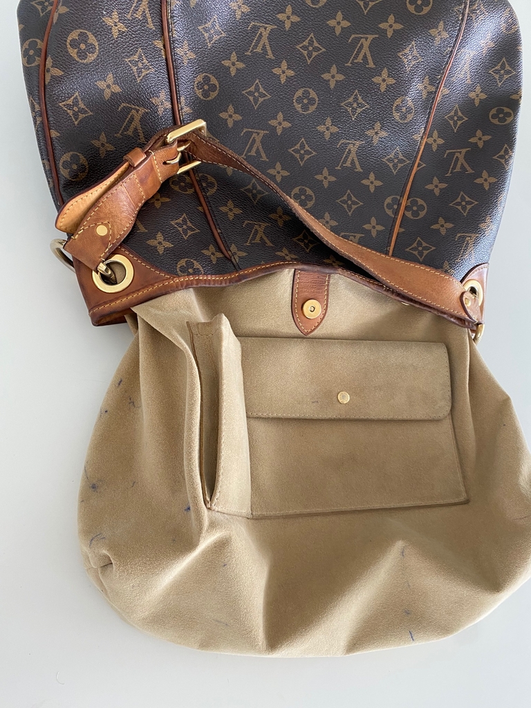 Bolsa Louis Vuitton Galliera PM confeccionada em canvas com estampa em monograma da marca e detalhes em couro vachetta. O modelo retangular grande, possui compartimento único amplo com fecho principal por botão magnético. Conta com três bolsos internos, sendo um com aba flap e fecho por botão de pressão. Alça única de ombro em couro, ajustável por fivela e ferragens douradas.